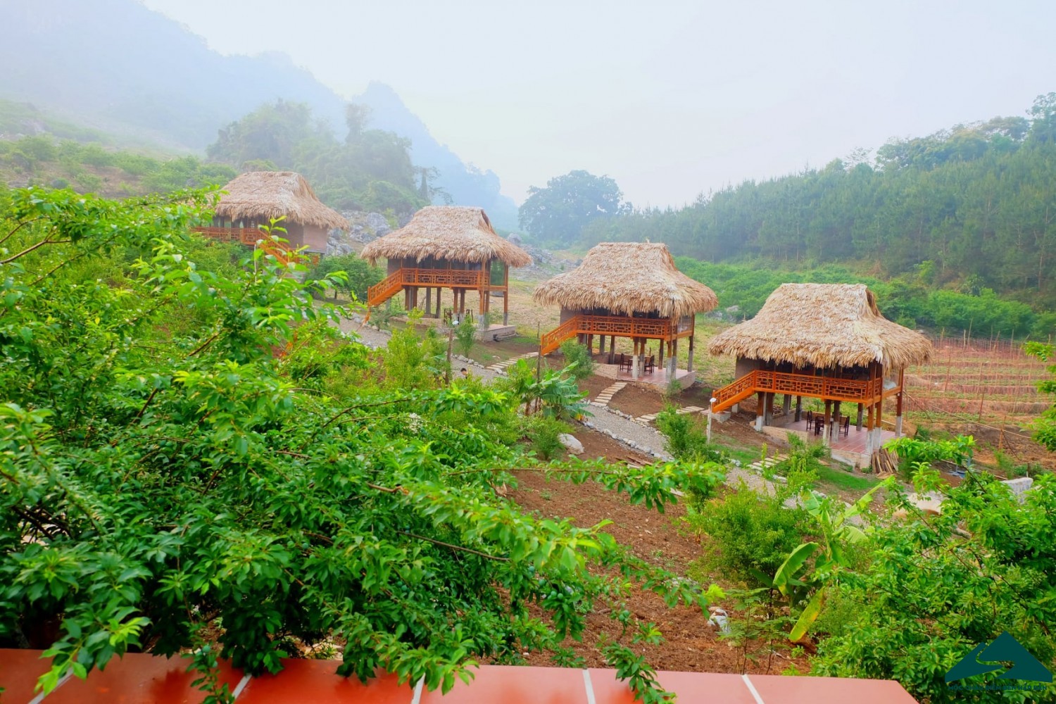 phong cách thân thiện, phòng nghỉ đa dạng về kiểu loại: nhà cộng đồng, phòng riêng…. Không gian rộng, ấm cúng là điểm nhấn- Mộc Châu Ecogarden: